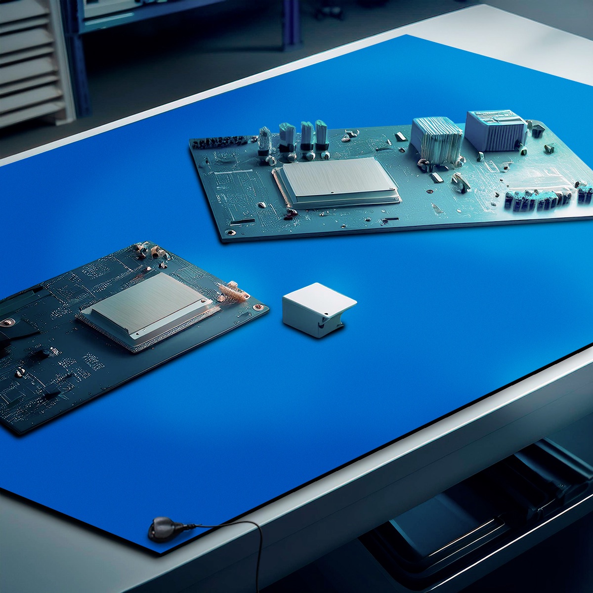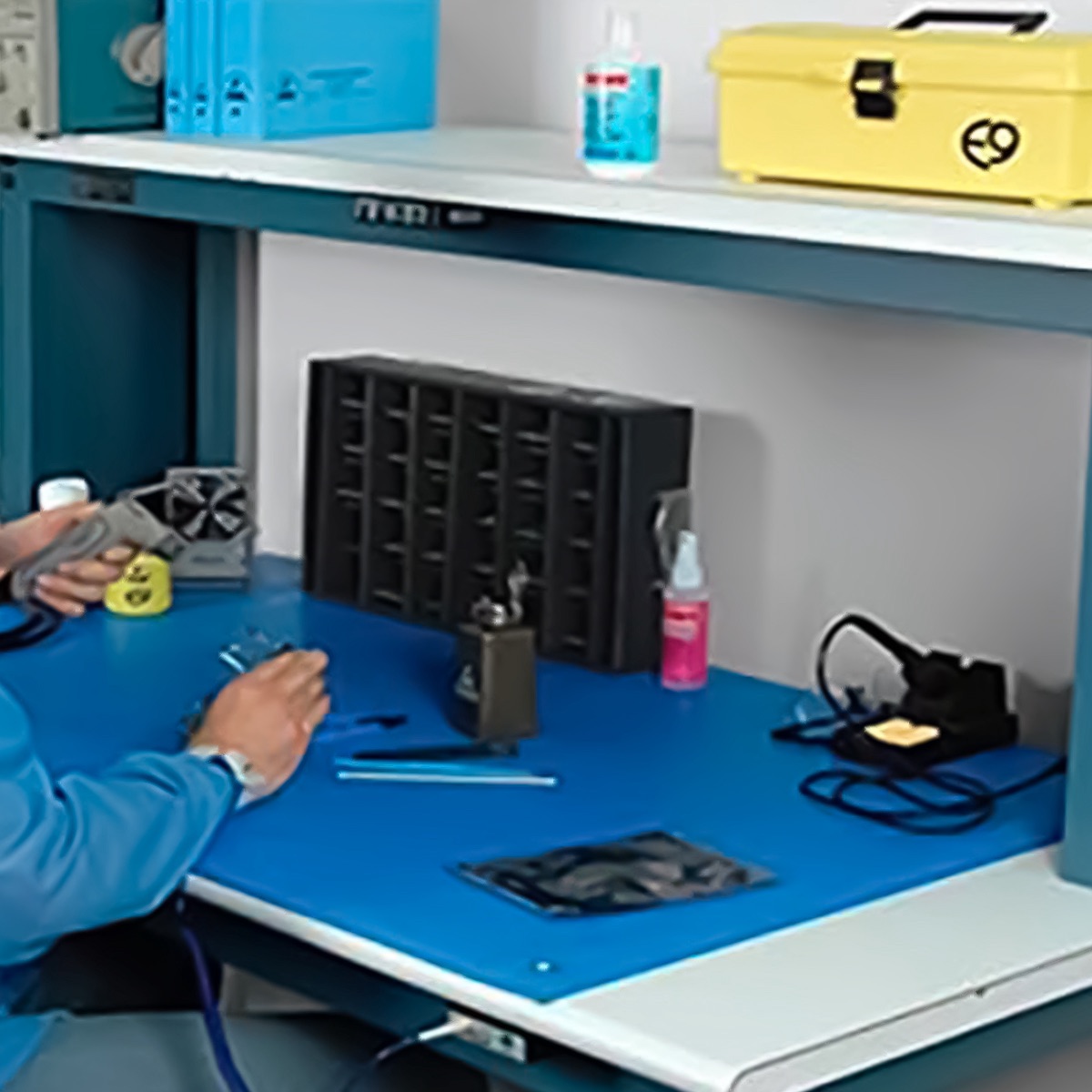 Tapete Bicapa ESD para mesas o estaciones de trabajo evitan la generación de estática sobre la superficie y disipan las cargas de los componentes.